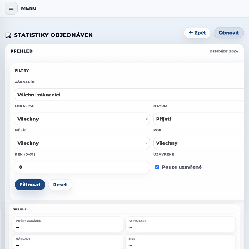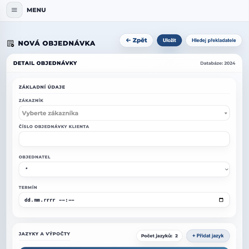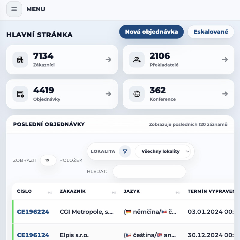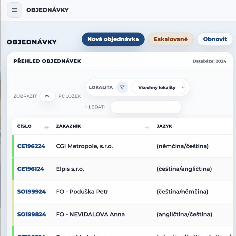 Rychlé vytváření objednávek, správa stavů, termínů a jazyků na jednom místě.